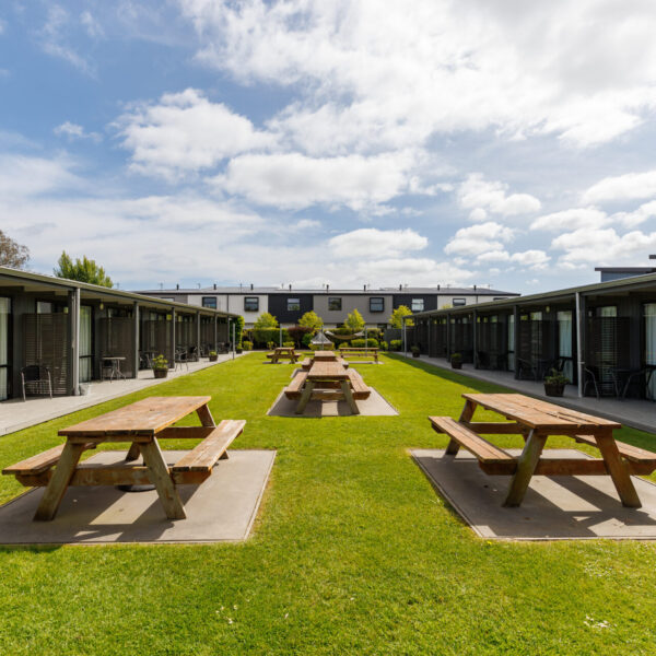 The Courtyard is the ideal place for those wanting easy outdoor access and spacious sunny rooms. These rooms are popular with families and groups who want to be close together and are further complemented with hammocks, picnic tables, a large grassy space, and BBQ area.